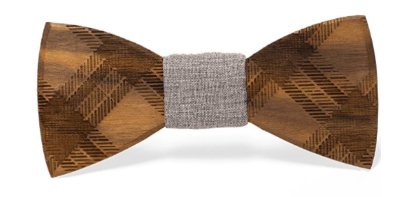 21. A wooden bowtie for a stylish dad made with a cotton fabric center piece.