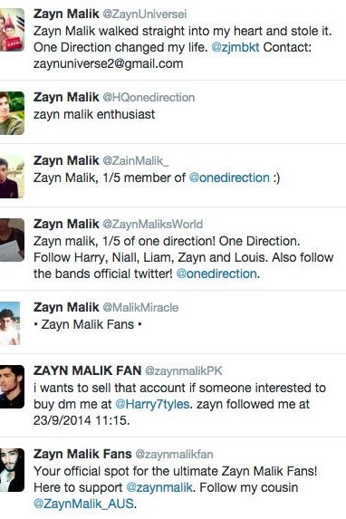 The majority of tweets directed at me were from accounts with members of One Direction as their avatar, as if thousands of Zayns, Harrys, Liams, Nialls, and Louis' were tweeting at me.