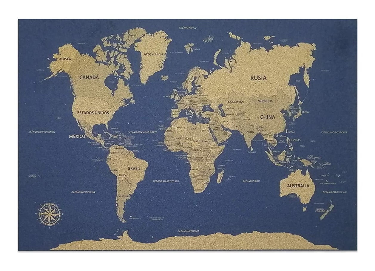 15. Un mapamundi hecho de corcho para marcar los lugares que ya visitaste, a los que se antoja ir y también para poner esas fotos de viajes inolvidables ($949).