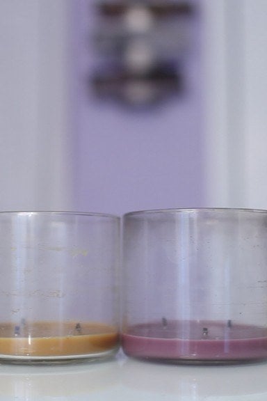 To remove the wax, you just pop the candles in the freezer overnight. Mason jars would also work, if you don't have enough old candles. From here.