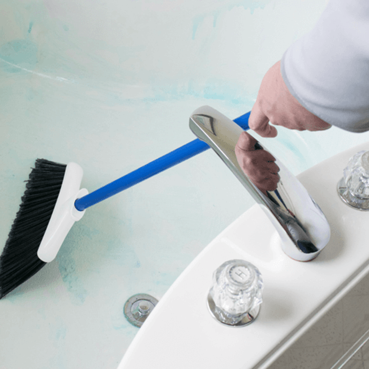 16. Scrub down your bathtub or shower insert with dish soap and a new broom (or a broom you keep just for that purpose).
