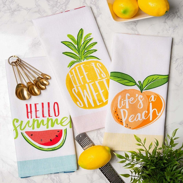 Get them on Amazon: the snowman towel set for $12.99 (also available in 11 other designs), the summer towel set for $11.50 (also available in one other design; if you like that aesthetic, they have a Christmas set for $15.78, too) and a three-pack of J.R. Watkins lavender-scented dish soap for $15.91.