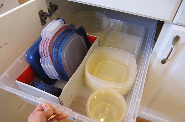 2. Take 10 minutes to sort and stack your plastic leftover containers.