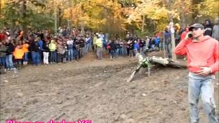 Fortunately a tree blocked the bike from hitting anyone but a man in front of the tree escaped serious injury by jumping the sliding motorcycle.