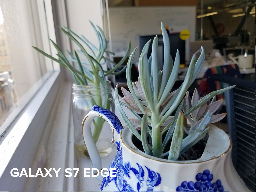 The Pixel image is brighter and more balanced, while the highlights in the Galaxy S7 Edge's photo are slightly overexposed.