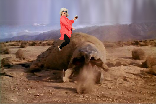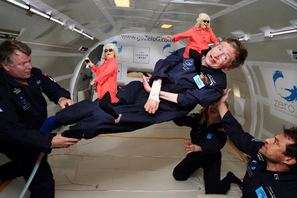 Two Paula Deen's riding Stephen Hawking in zero gravity.