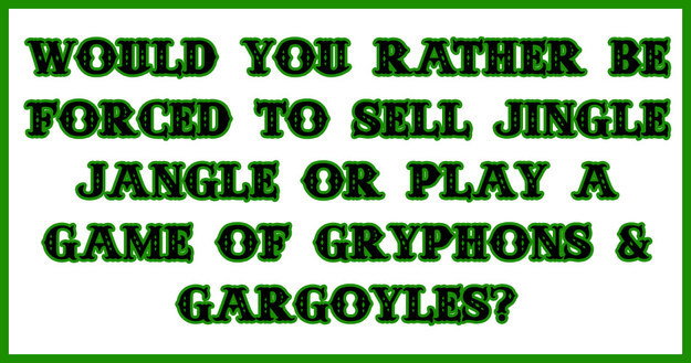 Would you rather be forced to sell Jingle Jangle or play a game of Gryphons & Gargoyles?