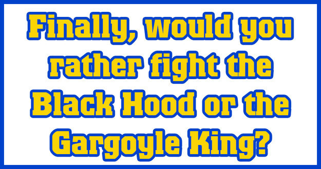 Finally, would you rather fight the Black Hood or the Gargoyle King?