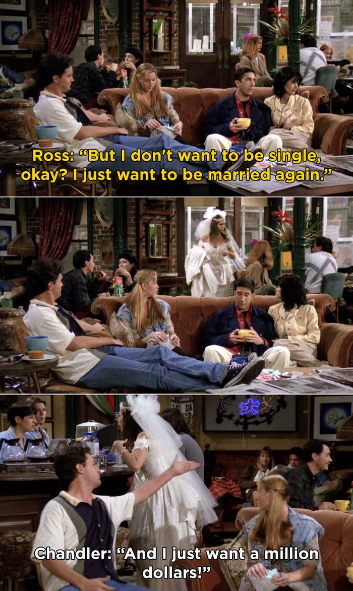 2. When Rachel entered Central Perk in her wedding dress on Friends.