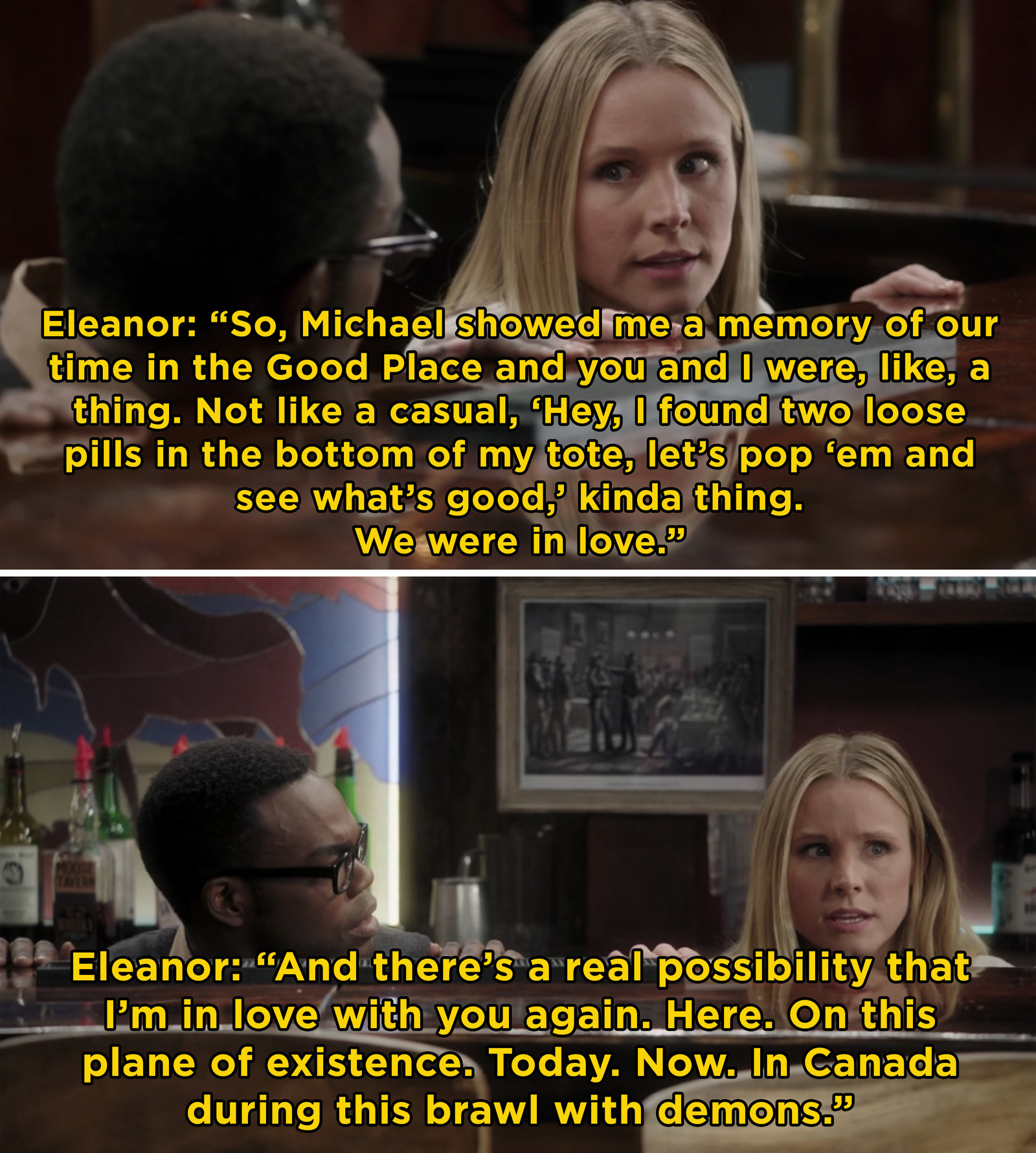 12. Also, Eleanor told Chidi about the reboot where they fell in love AND she said she's currently falling for him too.