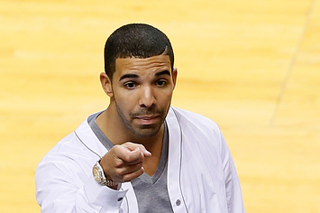 Young Aubrey was hanging out outside the Miami Heat's locker room at the NBA finals last, trying to get inside to say hi to his friend LeBron. But even Drake can't get past the security guard.
