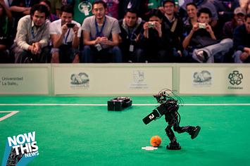 More than 1,000 robots from 40 countries descended on Holland, not to take over the world (yet), but to play soccer. Called RoboCup, it's the World Cup played by mildly terrifying biped robots. Participants say they hope they'll have a robot that can outplay a human player by 2050.