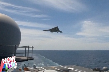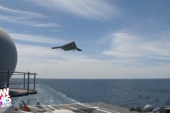 A testflight of the X-47B, the first unmanned drone designed to be operated from the sea.