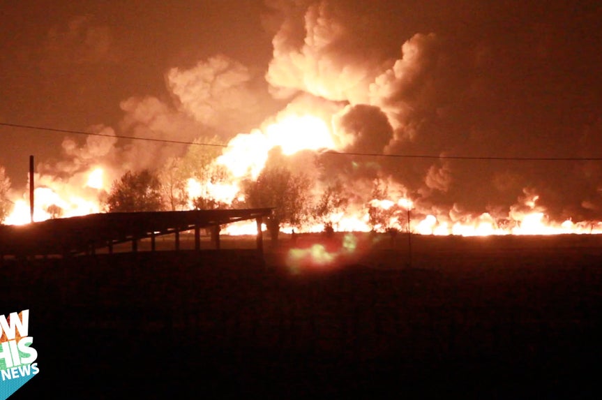 Around 300 homes were evacuated after a freight train derailed and one of its carriages exploded.