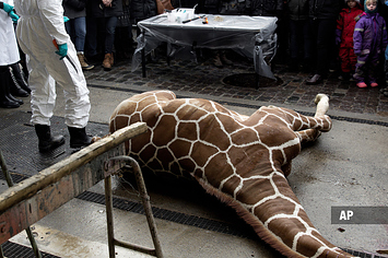 The Copenhagen Zoo killed a two-year-old giraffe and fed it to lions in front of a group of visitors that included children. Zoo officials said it was necessary to prevent inbreeding and educational for the children watching.