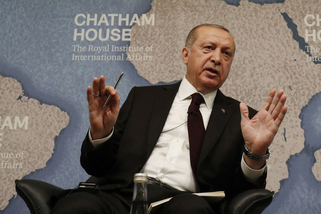 Erdogan was also barracked by protesters on Monday when he addressed the Chatham House think tank in London.
