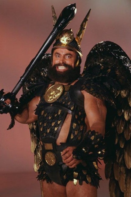On the left is Blessed in 1965, two years after the baby incident, and on the right in his rather more familiar guise as Prince Vultan in the 1980 sci-fi film Flash Gordon.
