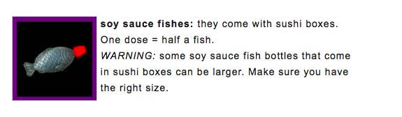 The campaign comes with practical tips on how to do just that. These include using the plastic, fish-shaped, soy sauce bottles found in sushi boxes to measure out GHB, and popping along to London's Burrell Street Clinic to pick up a free "slamming" pack, with all the equipment and handy hints you need to safely inject – for instance – meth.