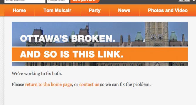 Meanwhile, the NDP is very serious about fixing both our great nation and our great nation's dead links.