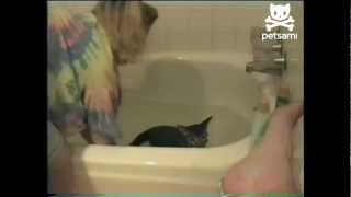 A cat is being rinsed off when he decides to jumps out of the bath and make the woman fall into the tub.Want more LOL pet videos? Subscribe to Petsami Like us on Facebook Follow us on Twitter
