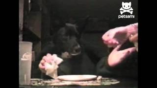 A dog eats his entire meal with human hands. Want more LOL pet videos? Subscribe to Petsami Like us on Facebook Follow us on Twitter