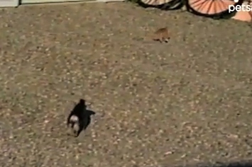 A group of puppies back a nervous cat into a wall. One of the puppies is so afraid of the cat that he runs away in fear and hides underneath a car. Want more LOL pet videos? Subscribe to Petsami Like us on Facebook Follow us on Twitter