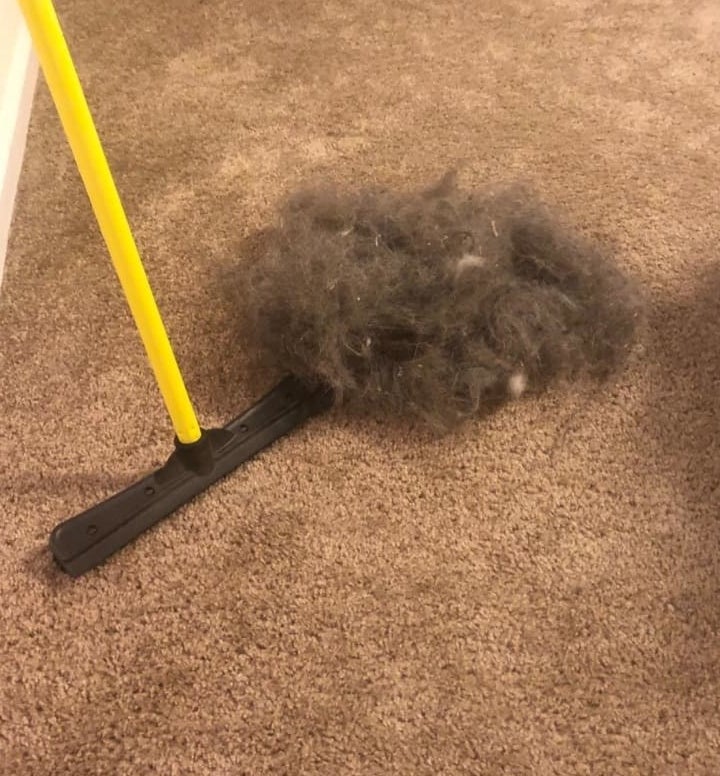 6. A combination broom and squeegee that'll be your new go-to tool for wrestling hair and lint trapped in your carpet right out from under your feet. Your vacuum is shaking.