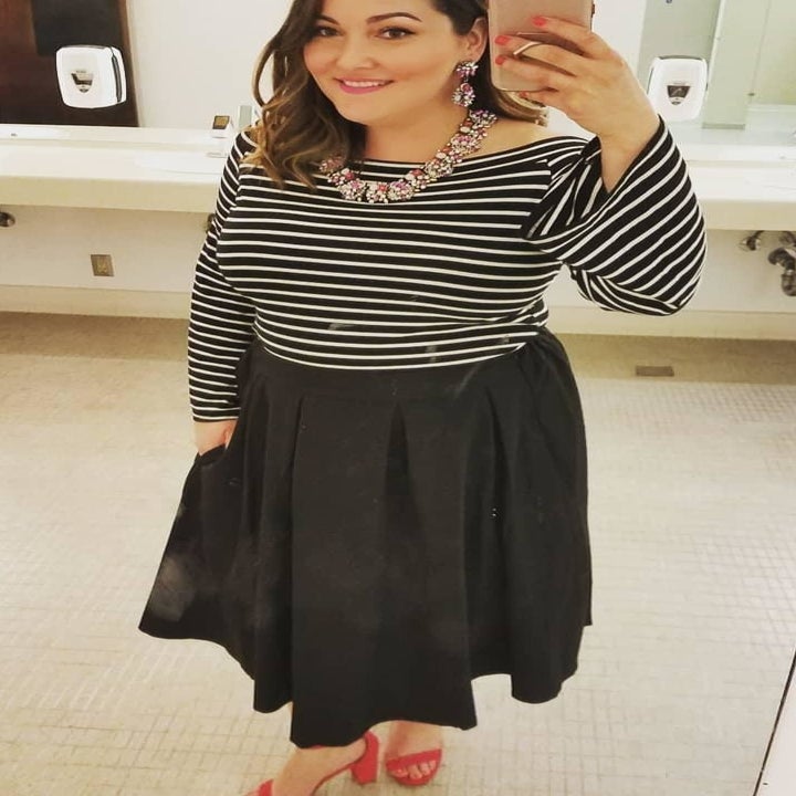 26. A high-waisted flare skirt for adding a little *flair* to your wardrobe. I dare you to put this on and NOT twirl.