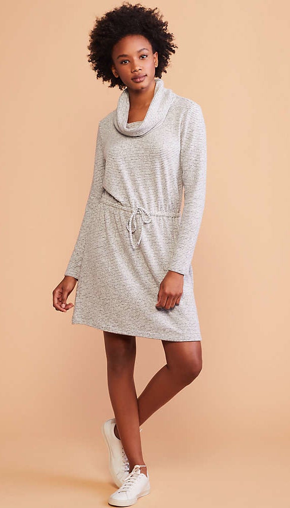 28. A cowl-neck drawstring dress for staying cozy as can be as you enjoy a night in by the fire.