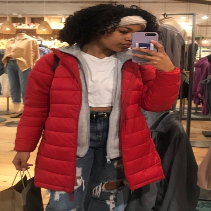 2. A water-resistant puffer coat with a cozy hood so you can really cocoon yourself up and stay dry.
