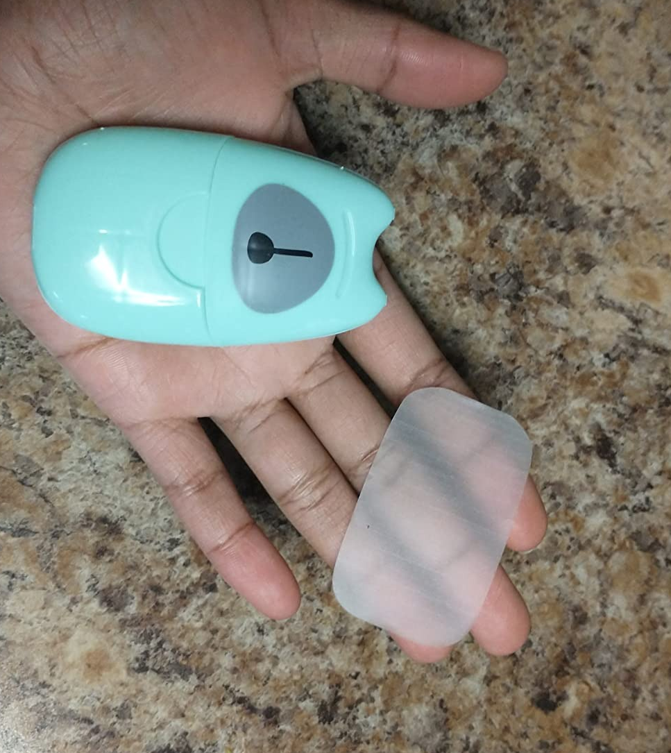 "I saw these all over TikTok and since I'm going on a road trip across the states, I thought why not. We all know those rest stops that run out of soap, so you either use hand sanitizer (if you're lucky) or wet your hands with just water to trick your conscience into thinking you didn't just leave a dirty bathroom without washing your hands. Especially now during Covid, hand washing is the #1 way to stay safe. So I just had these delivered 10 minutes ago and decided to try one. The sheets are super thin but when you wet them, they create so much lather. I probably stared at my hands in disbelief for a solid 10 seconds. They definitely feel clean and the smell is a light floral type. I definitely recommend these to have with you regardless what you are doing. Plus these little guys are super tiny and can go into the tiniest purses or even your pockets in your jeans." —Cookie Monster