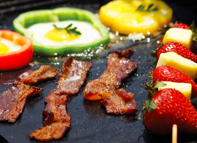 15. A non-stick grill mat so you can prevent even the tiniest of crumbs from falling through or sticking to the grates. You can even do your prep directly on the mat and carry it over to the grill, and it's dishwasher safe for easy cleanup. Live out your hibachi chef dreams of creating an onion volcano with this nifty mat!