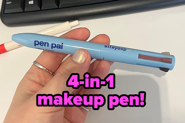 16. A 4-in-1 makeup pen that's just like the multicolored pens all the cool kids used to have at school. It comes with highlighter, lip liner, eyeliner, and brow pencil for an on-the-go touch-up.