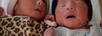 Babies Jaelyn and Luis were born just two minutes apart.