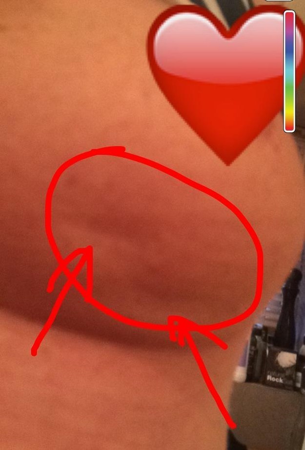 In the picture, which her husband took for her, a small dent can be seen on the underside of Royle’s left breast.