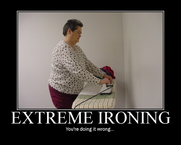 According to Wikipedia- Extreme Ironing is an extreme sport/performance art in which people take an ironing board to a remote location and iron items of clothing.