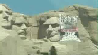 Greenpeace Activists repelled down Mt.Rushmore placing a large banner advocating an end to Global Warming with a picture of Barack Obama next to Abraham Lincoln. Damage to the national monument has not been assessed.