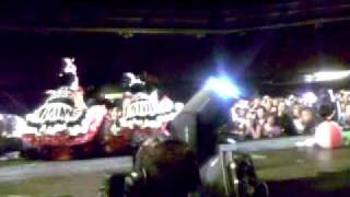 Pink had just come onstage in Nurnberg set to perform "Glitter in the Air." As two of her dancers were hooking her up to a harness which appears to have been released too quickly by stagehands- causing the performer to catapult off the stage into a steel barricade. The show was canceled! Language NSFW