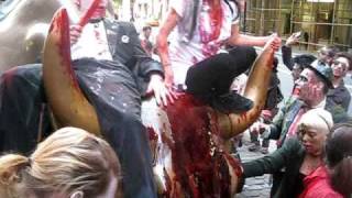 Zombies Attack on Wall Street and Bloody Aturdo D. Modica's Charging Bull that sits in NYC's Bowling Green Park!
