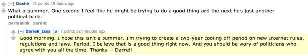WASHINGTON — On Wednesday morning, Republican Rep. Darrell Issa urged Reddit users to ask him anything — about Internet regulation, that is.