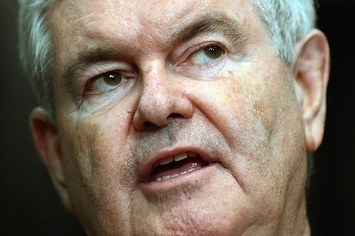 TAMPA, Fla — Newt Gingrich kicked off "Newt University" — a characteristic hybrid of a campaign event, business venture, and effort by the Republican Party to keep Gingrich busy — in a modest-sized, half-full hotel ballroom today, a room dominated by a large stand of cameras.