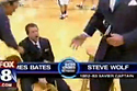 Before the Xavier vs. Dayton game announcer James Bates took a tumble when his stool gave out from under him.