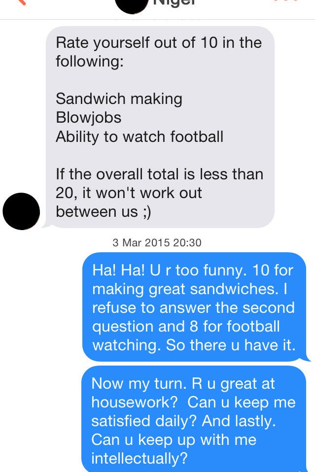 Mum: You should ask more details about themselves before you meet them, you shouldn't just go on pictures. The idea is to get to know them more. They could be bloody maniacs.