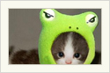 This has absolutely nothing to do with the kitten. Nothing at all. This is about the hat. The cute, cute frog hat!