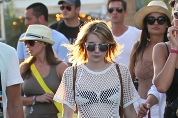 Julia Roberts’ niece, actress Emma Roberts, turned heads as she rocked a horrible fishnet dress to show off her simple black and white bikini