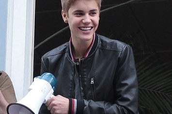 Teen superstar Justin Bieber thanked his fans for their incredible support by serenading the huge crowd from the balcony of the Universal Music headquarters