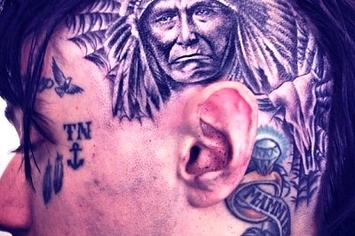 Miley Cyrus’ brother Trace Cyrus, who is engaged to marry former Disney star Brenda Song, proudly showed off his new tattoo