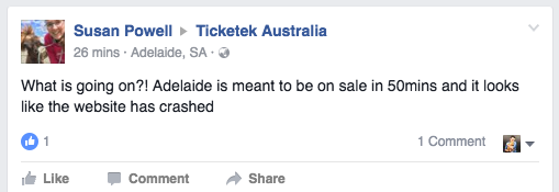 And sure enough, anyone attempting to log on to Ticketek on Monday afternoon was greeted with this.