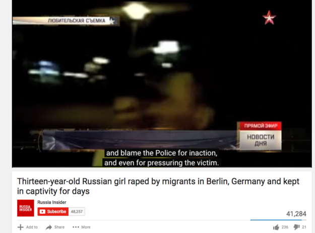 A German lawyer has since filed a complaint against Ivan Blagoy, the reporter in the Russian news clip, describing his report as “extremely dangerous, especially for the refugees.”