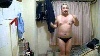 Portly Japanese Man Dancing In Underwear